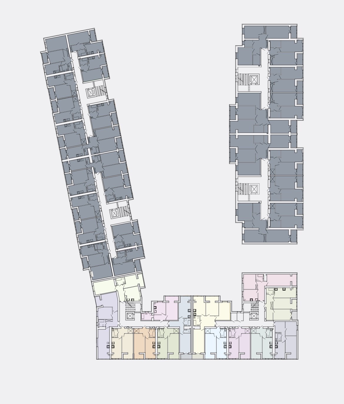 Паркинг — гаражи, парковочные места. На первом этаже располагаются коммерческие помещения.