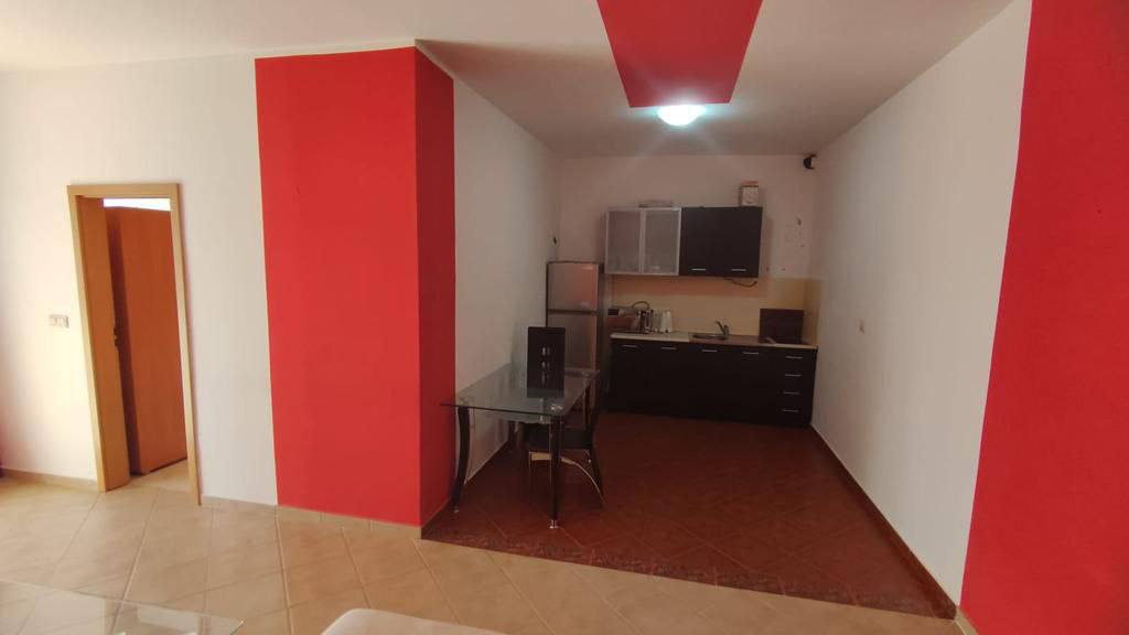 Состоит из прихожей, просторной гостиной с кухней, 1 спальня, ванная комната и терраса.
