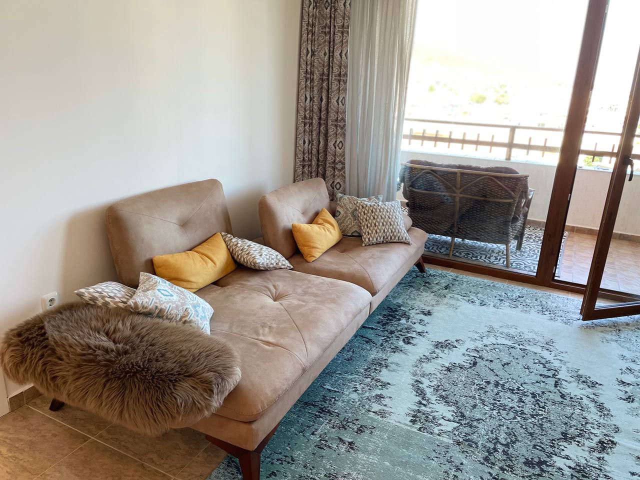 Квартира состоит из гостиной, двух спален, двух санузлов и большой террасы с ПАНОРАМНЫМ ВИДОМ НА ГОРЫ И МОРЕ.