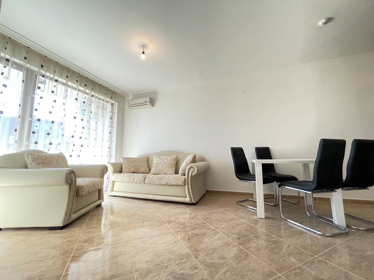 Квартира состоит из гостиной, одной спальни, санузла и большой террасы с видом на бассейн.