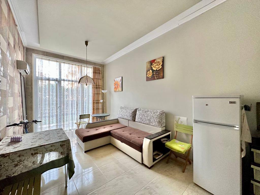 Квартира состоит из прихожей, спальни, большой кухни-гостиной, санузла и собственным выходом на огороженный участок земли.