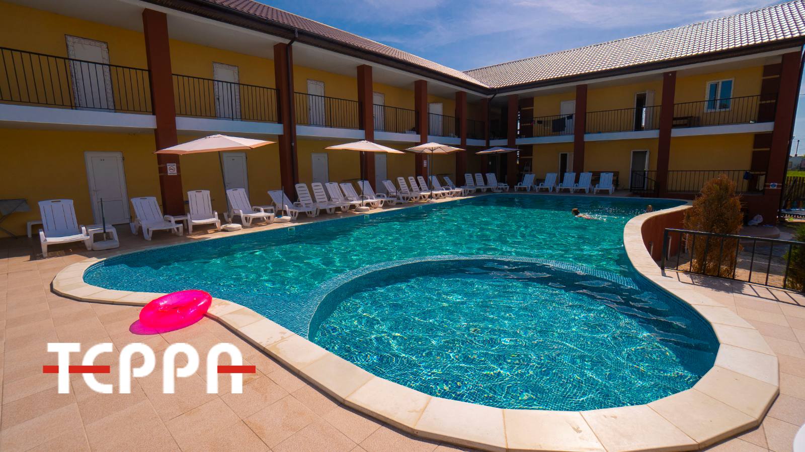 Также на территории базы, есть большой бассейн 18х5м, что позволяет проводить время в очень жаркую погоду так и во время шторма на море.