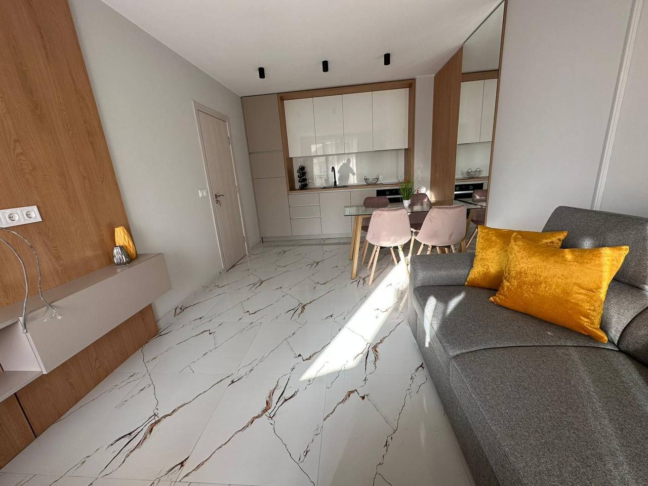 Продажа шикарной квартиры с двумя спальнями, большой гостиной с кухней, двумя санузлами, прихожей и двумя балконами.