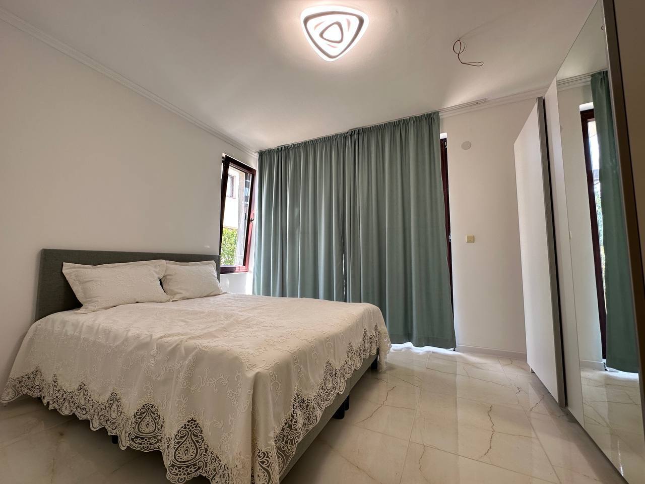 Распределение: две спальни, три санузла, гардеробная, гостиная с кухней, балкон с панорамным видом на море.